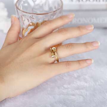 FOCUSTEEL Cable Ring - Adjustable Stainless Steel Cuff Pearl Ring for 70-90mm