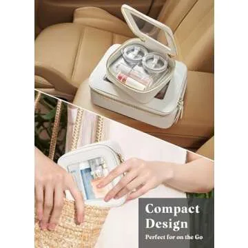Fodayuse Mini Clear Makeup Bag - White Leather Makeup Pouch for Travel, Small Toiletry Bag for Purse & Backpack, Waterproof Square Organizer with Zipper - Clear Zipper Pouches for Women