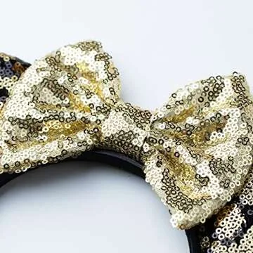 Foeran Mouse Ears Headbands Shiny Bows Mouse Ears Glitter Party Princess Decoration Cosplay Costume for Girls Women (Leopard/Gold)