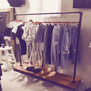 FOF FRIEND OF FAMILY Industrial Pipe Clothing Rack Garment Rack Pipeline Vintage Rolling Rack with Wheels Ballet Clothing Rack