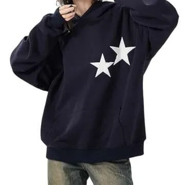 Foidiccx Y2k Hoodie Women Men Graphic Star Hoodies Vintage Aesthetic Pullover Sweatshirt Harajuku Jacket Streetwear Dark Blue
