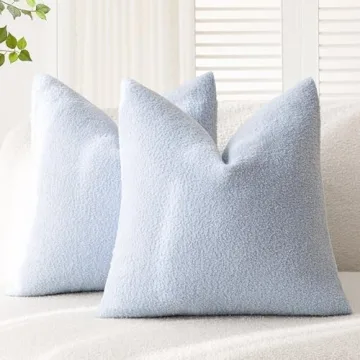 Show more Introducing the Foindtower Pack of 2 Curly Faux Fur Decorative Throw Pillow Covers, the ultimate accessory for anyone looking to enhance their home decor with a touch of elegance and comfort. Measuring 20 x 20 inches, these cushion covers are crafted from high-quality, durable curly faux fur fabric, ensuring a soft and fluffy feel that adds a cozy, inviting atmosphere to any room. Available in a soothing light blue hue, they perfectly complement a variety of color palettes, making them adaptable to different interior styles. The invisible zipper design not only provides a snug fit for your pillows but also enhances the overall aesthetic, allowing for easy insertion and removal. Transform your living space with these luxurious, texture-rich pillow covers that promise not only functionality but also a dash of chic decor!