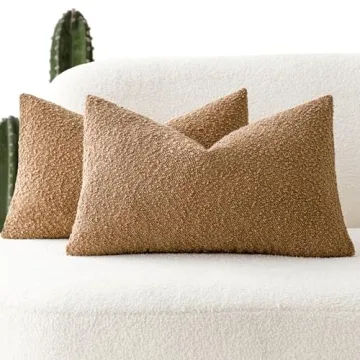 Show moreTransform your living space with the Foindtower Pack of 2 Textured Boucle Throw Pillow Covers. These accent solid lumbar pillow cases are designed to bring a cozy, soft decorative touch to your couch, chair, or bedroom. Measuring 12 x 20 inches, the Tobacco color variant offers a timeless mid-century boucle loop detailing that adds a unique texture to your home decor. Inspired by organic coloration from natural dyes found in plants and minerals, these pillow covers blend seamlessly with any interior design theme.