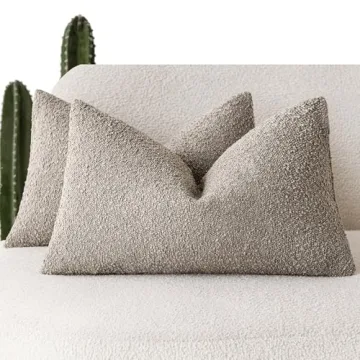 Show more Transform your living space with the Foindtower Pack of 2 Textured Boucle Throw Pillow Covers, a stunning addition to any home décor. Inspired by the classic mid-century designs of the 1940s, these pillow covers feature a timeless Boucle texture that brings an elegant yet cozy vibe to your furniture. Crafted with meticulous attention to detail, the pillow covers are designed to evoke the organic coloration found in nature, with soft hues that reflect the calming pigments of plants and minerals. Not only are these covers visually appealing, but they also offer a uniquely cozy handfeel that sets them apart from ordinary polyester options, ensuring a luxurious experience for you and your loved ones.