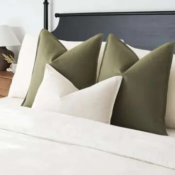 Show moreIntroduce a touch of charm and versatility to your home decor with the Foindtower Set of 2 Decorative Cotton Linen Throw Pillow Covers. Featuring a stylish two-color design with a vibrant A-side in solid olive green and a subtle beige on the B-side, these pillow covers bring a modern yet understated flair to any room. Each cushion cover measures a generous 20x20 inches, providing ample space to enhance your couch, sofa, or bed. Crafted from a blend of high-quality polyester, linen, and cotton, this fabric not only ensures a cozy and inviting feel but also promises durability, making it suitable for year-round use.