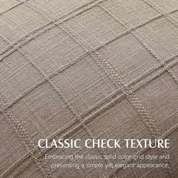 Show moreTransform your living space with the Foindtower Set of 2 Decorative Linen Check Throw Pillow Covers. Measuring 22x22 inches, these exquisite cushions are designed to combine artistic flair with functionality. Crafted in a neutral tan taupe color, the classic check texture effortlessly enhances your home while providing a vintage farmhouse vibe. Made from a custom blend of linen and polyester, these pillow covers are not only soft and breathable but also durable, meaning they’ll withstand daily wear and tear while retaining their elegant appearance. Perfect for adding a touch of modern boho style to any room, these covers will soon become a staple in your home decor collection.