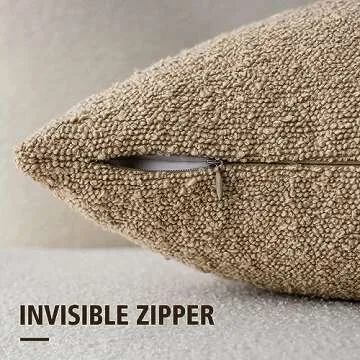 Foindtower Textured Boucle Throw Pillow Covers Accent Solid Lumbar Pillow Cases Cozy Soft Decorative Couch Cushion Case for Chair Sofa Bedroom Living Room Home Decor, 12 x 20 Inch,Taupe Khaki Camel