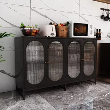 What sets the FOKWE cabinet apart? Its impressive large storage capacity ensures that your home remains organized and clutter-free. Featuring four spacious closed cabinets with partitioned storage, you have the freedom to customize your organization system. The removable shelf offers even more versatility, allowing you to adapt the space according to your needs. Furthermore, its unique fluted glass design not only enhances its visual appeal but optimizes natural light in your living area, creating a warm and inviting atmosphere.