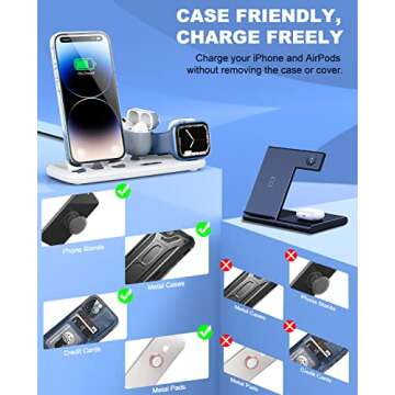 What sets this charging station apart is its broad compatibility; it supports all iPhone models, including the latest iPhone 14 series, various iWatch versions from 1 to 8, and even the latest AirPods models. You'll never have to worry about compatibility issues again!