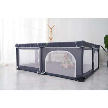 Foldable Baby Playpen with Mat, 50x50inch Playpen for Babies and Toddlers,Portable Play Pen with 30pcs Ocean Balls and 4 Handlers Indoor & Outdoor. (59x59in)