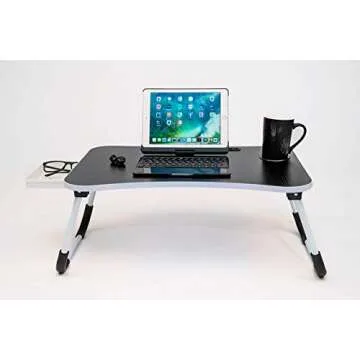 Foldable Laptop Bed Tray - Ergonomic Portable Desk with Storage Drawer and Device Slots