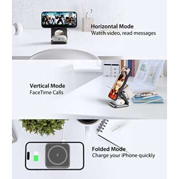 Foldable Magnetic Wireless Charger, KU XIU X40 Aluminum Alloy 3 in 1 Charging Station for Apple, Fast Mag-Safe Charger Stand for iPhone 16 15 14 13 12 Series, 5W for iWatch, AirPods 3/2/Pro, Gray