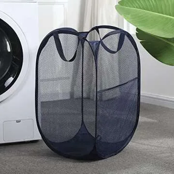 Foldable Mesh Popup Laundry Hamper,Laundry Basket Easy to Open and Fold for Dorm,Travel, College Dorms, and More (2 blue)