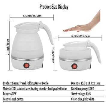 Foldable Portable Kettle | Travel Kettle - Upgraded Food Grade Silicone, 5 Mins Heater To Quickly Foldable Electric Kettle, White 600ML 110V US Plug