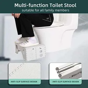 Show more Transform your bathroom experience with this innovative toilet stool designed for maximum comfort and efficiency. This remarkable product allows your body to adopt a natural squatting position, which can vastly improve the efficiency of your bowel movements. Created with input from medical professionals, this toilet stool promotes a squatting angle of 35°, effectively relieving pressure on your puborectalis muscle and minimizing straining. Its scientifically-backed design is a game-changer for anyone looking to enhance their digestive health.