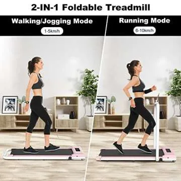 Foldable Treadmill Walking Pad Under Desk, 6.2MPH Folding Treadmill with Handle for Office & Home, 2.5HP Running Machine with 300 LBS Capacity, Safety Lock, Pink
