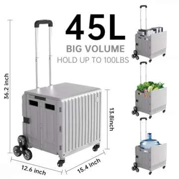 Foldable Utility Cart Stair Climber Wheeled, Collapsible Rolling Crate with Telescoping Handle, Stair Climbing Cart Used as Seat, Tool Cart, Rolling Folding Cart, Cleaning Carts on Wheels, Stair Cart