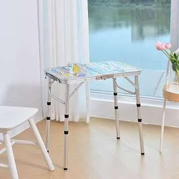 Folding Camping Table 2ft Portable Pinic Table Adjustable Height Table Small Card Table Aluminum Foldable Lightweight with Carry Handle for Outdoor Indoor Hiking Camp BBQ Beach (Blooming Floral)