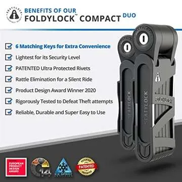 FoldyLock Compact Folding Bike Locks - Set of 2 Matching Bike Locks with 6 Identical Keys - Patented Lightweight Heavy Duty Anti Theft Locks with Carrying Cases for Bicycles and E-Bikes - 85 cm