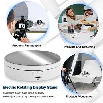 Introducing the Foleto Rotating Display Stand, the ultimate solution for photographers and craftspeople seeking to enhance their product displays with stunning 360-degree rotation. This sleek, motorized turntable elevates your presentations by creating smooth, continuous rotation, perfect for showcasing everything from jewelry and watches to digital gadgets and even cakes. With a maximum load capacity of 6.6 lbs and a compact size of just 5.4 inches in diameter, it's the...