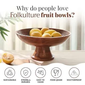 Show more Discover the beauty and functionality of our exquisite 12-inch natural acacia wood fruit bowl, crafted to elevate your culinary experience and aesthetic appeal in your home. This premium quality bowl not only offers a rustic charm with its organic wood finish, but it is also food-safe and free from toxins, ensuring a healthy choice for your family.