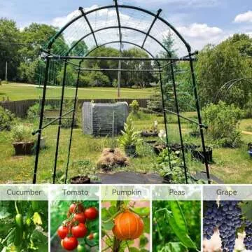 FOLLOOK Garden Arch Trellis for Climbing Plants Outdoor, 7.8 ft Tall PE-Coated Steel Walkway, Arched Arbors Tunnel Trellis for Vegetables, Cucumber Plant Support for Garden Raised Bed with Netting