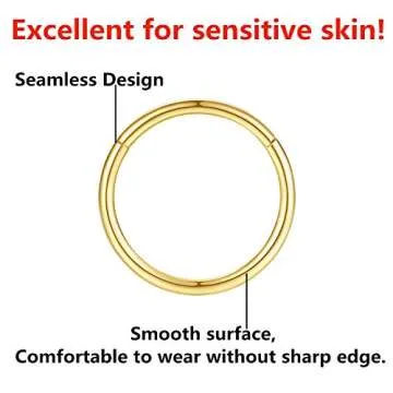 FOLLOWMOON 13mm Septum Ring Gold Nose Rings Hoop 16 Gauge Nose Hoop Helix Daith Tragus Earrings Hinged Segment Septum Clicker Lip Rings 16g Cartilage Earring Nose Piercing Jewelry Surgical Steel