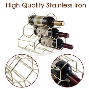 In comparison to other wine storage solutions on the market, the FOMANSH Countertop Wine Rack stands out due to its unique geometric design and robust material quality. While many competitors use flimsy plastic or less durable metals, this wine rack ensures long-lasting performance and style. Its chic aesthetic appeals to a wide range of tastes, making it a more versatile option than traditional wooden or standard metal racks. Additionally, the free-standing design allows for greater flexibility in placement, without limiting access to your favorite bottles.