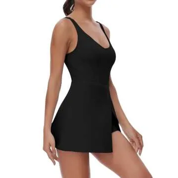 FOMELY Tennis Dress with Built in Shorts and Bra Women U Neck Athletic Dress Golf Dresses for Women Side Slit Workout Dress Flare Mini Dresses Black