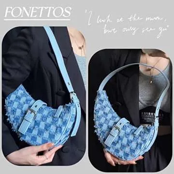 FONETTOS Y2K Saddle Hobo Bag, Women Shoulder Purse Moon Bag Handbag Fashion for Girls