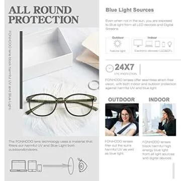 FONHCOO Blue Light Blocking Glasses Women Men Computer Eyeglasses,TR90 Fashion Round Transparent Anti Blue Light Glasses with Anti Eyestrain & UV Glare for Gaming & Reading (Green)