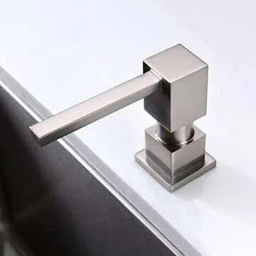Show more Elevate your kitchen or bathroom sink area with the stunning FONVETH Contemporary Design Soap Dispenser. This beautifully crafted soap dispenser features a durable brass pump head, ensuring not only a sleek aesthetic but also unmatched resistance to corrosion and rust. The unique square pump head design injects a modern touch into your space, transforming a typically mundane task into a delightful ritual. Whether you are washing your hands or doing dishes, enjoy the seamless flow of luxurious liquid soap with every pump.