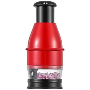 Show more Introducing the Food Chopper, your new best friend in the kitchen! Designed with convenience in mind, this easy-to-clean vegetable chopper and dicer is crafted for busy cooks who need a reliable tool for chopping onions, garlic, nuts, and a variety of veggies. Its premium sharper hardened stainless steel blades ensure that you chop ingredients evenly and with less effort, allowing you to reduce your prep time significantly. Plus, with a thickened spring that is more resilient than its counterparts, you can enjoy quick and efficient chopping with each slap. The latest 2023 design features a soft touch cover that makes for comfortable pressing, allowing you to breeze through meal prep. The innovative scraper helps keep food off the sides, minimizing waste while ensuring your kitchen remains mess-free.