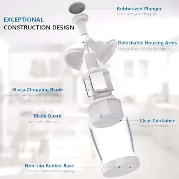 Gone are the days of tedious chopping; this handheld solution allows you to cut a variety of foods in seconds with just a simple hand push. An upgraded soft-touch plunger ensures comfortable pressing, while the blade guard provides protection for your fingers, promoting a safe cooking environment. Whether you're preparing veggies for a salad or dicing onions for your favorite dish, this chopper stands out with its 360-degree stainless steel blade that guarantees faster and more efficient results.