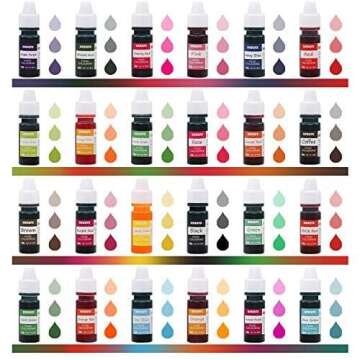 Show more Transform your culinary and crafting endeavors with this vivid food coloring set that features an astonishing array of 24 vibrant colors! From the fiery reds to tranquil blues and earthy browns, each bottle is filled with rich hues that will elevate any project. Perfected by our expert formulation, these highly concentrated dyes not only enhance the visual appeal of your baked goods and crafts but do so without compromising on taste or texture. Safety is our priority, as this product is made from food grade material that is cruelty-free and entirely pure.
