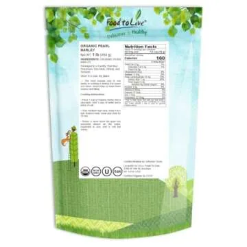 Food to Live Organic Pearl Barley, 1 Pound – Non-GMO, Polished Unhulled Barley, Kosher, Vegan, Bulk. Cooks Faster than Hulled Barley. Rich in Fiber, Selenium. Great for Hot Cereal, Salads, Stews
