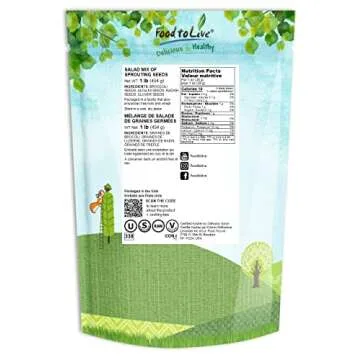 Show moreIf you're passionate about health and nutrition, the Salad Mix of Sprouting Seeds from Food to Live is your perfect companion in the kitchen! This unique blend features a selection of high-quality seeds that boast a remarkable germination rate. Imagine fresh, crunchy sprouts that not only elevate the taste of your favorite dishes but also pack a nutritional punch. These seeds are an all-natural product, ensuring that what you're growing in your home is purely healthy and free from harmful additives.