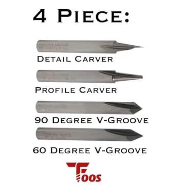 FOOS - Engraving CNC Wood Carving Router Bit Set - 4pcs - Solid Carbide - 1/4” Shanks = Profile + Carving Liner + 2 V Groove USA Veteran Owned