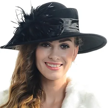 Step into a world of timeless elegance with the FORBUSITE Women Winter Dress Hats, where vintage influences blend beautifully with modern sophistication. Crafted from 100% wool, this exquisite hat is designed to keep you warm while adding a chic touch to your outfit. The alluring wide brim, accented by a stunning feather, makes it a standout accessory for any occasion. Whether you're attending a formal event or enjoying a casual tea party, this hat provides...