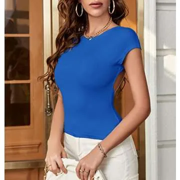 ForeFair Women Sexy Backless Top - Cute Slim Fit Crewneck Shirt for Summer