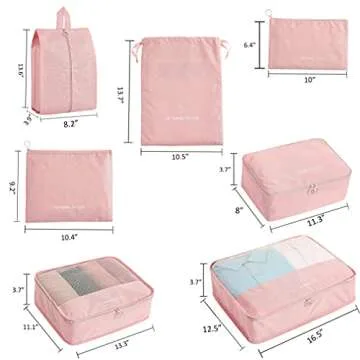 FOREMS 7 Set Packing Cubes For Suitcases Travel Luggage Organizers With Laundry Bag,Shoe Bag And Toitetry bag,Lightweight Luggage For Carry On Suitcase (pink)