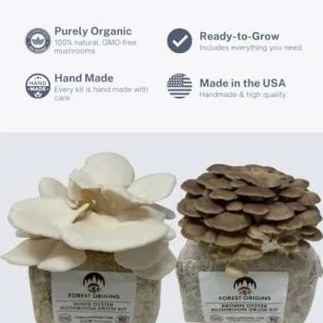 Show more Introducing the **Forest Origins White & Brown Oyster Mushroom Grow Kit 2-Pack Variety**, your gateway to an exciting and delectable horticultural journey. Handmade in California and designed for all levels of gardeners, especially beginners, these kits offer a delightful way to cultivate gourmet mushrooms right at home. With a user-friendly approach, you can expect to see your first harvest within just 10 days of "pinning". Enjoy the rich textures and flavors of luscious oyster mushrooms that elevate every meal into a gourmet experience. Take advantage of this unique gift idea that not only serves as Top Gardening Gift but also a perfect Holiday Gift!