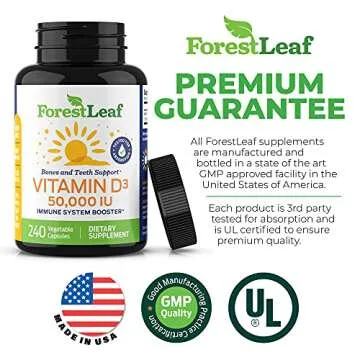 ForestLeaf Vitamin D3 50000 IU - Bone Health and Immune Support - Small Easy to Swallow Vegetable Capsules - Non-GMO Gluten Free VIT D - VIT D3 Vitamin D Supplements for Women and Men, 240 Count