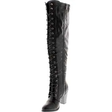 Forever Camila-48 Womens Chunky Heel Lace Up Over The Knee High Riding Boots,Black,10