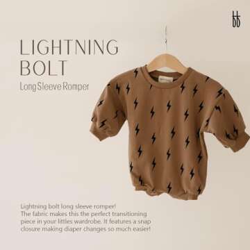 forever french Baby Sweatshirt Bubble Rompers | For Newborns Infants & Toddlers | Baby Onesie | Baby Boy & Girl Clothes | Snap Closure | Long Sleeve | Lightning Bolt | 18-24 Months
