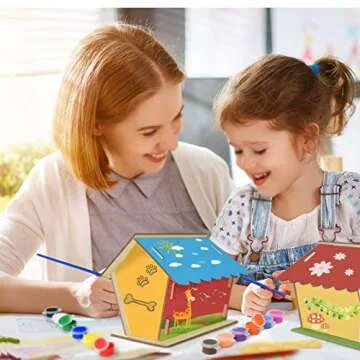 Show more Introducing the FOREVERL 2 Pack DIY Bird House Kit – the perfect creative outlet for both kids and adults! This delightful kit comes with everything you need to build and decorate two charming birdhouses, including 12 vibrant paints, 3 brushes, 2 strings, and even an apron to keep those artistic clothes mess-free. Measuring at a practical size of 6.5 inches in length, 4.5 inches in width, and 6.2 inches in height, these birdhouses are not only fun to assemble but also provide a satisfying and engaging experience that sparks creativity.