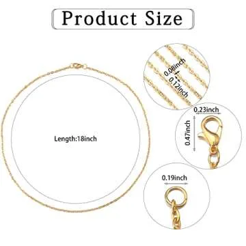 Show moreTransform your jewelry creation experience with this exquisite set of necklace chains that includes 12 pieces of gold and 12 pieces of silver. Each chain measures approximately 18 inches in length and features a 2 mm width, perfect for a variety of DIY jewelry projects. The sturdy lobster clasps (12x6mm) and jump rings (5mm) ensure that each piece is easy to wear and customizable. Designed for versatility, these chains are not just for necklaces; unleash your creativity to craft stunning bracelets or anklets that suit any occasion.