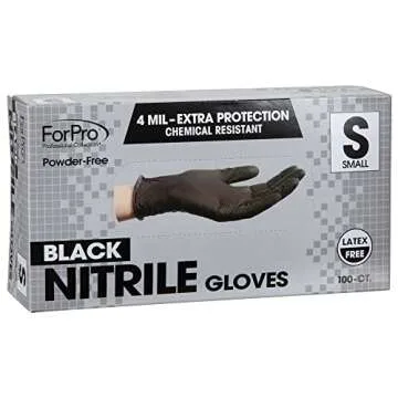 ForPro Professional Collection Disposable Nitrile Gloves, Chemical Resistant, Powder-Free, Latex-Free, Non-Sterile, Food Safe, 4 Mil, Black, Small, 100-Count