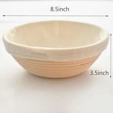 Show moreDiscover the art of baking with the FORSUN Round Bread-Banneton-Proofing-Rising-Basket, a must-have for any home baker seeking to elevate their bread-making experience. This artisan-grade proofing basket, made from natural rattan cane, is thoughtfully designed to wick moisture away from the dough, ensuring a perfectly crispy crust. Its dimensions of 8.5 inches in diameter and 3.5 inches in height make it ideal for holding up to 1.5 pounds of dough, accommodating various recipes, from Lahey No Knead to Tartine Country and traditional French bread. Durable and free from harmful dyes and chemicals, this bread proofing basket helps you create healthier loaves that are sure to impress.