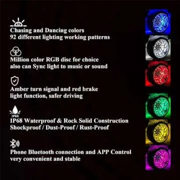 Equipped with RGB Multi-Colors, this LED lighting system lets you control up to 92 different working patterns directly from your smartphone. Whether you're an Android or iOS user, you can seamlessly connect to our app, allowing you to choose from millions of color combinations or let the lights dance in sync with your music. This dynamic adaptability contributes to the kit's appeal, making it a fantastic addition for any vehicle owner who enjoys customizing their ride.